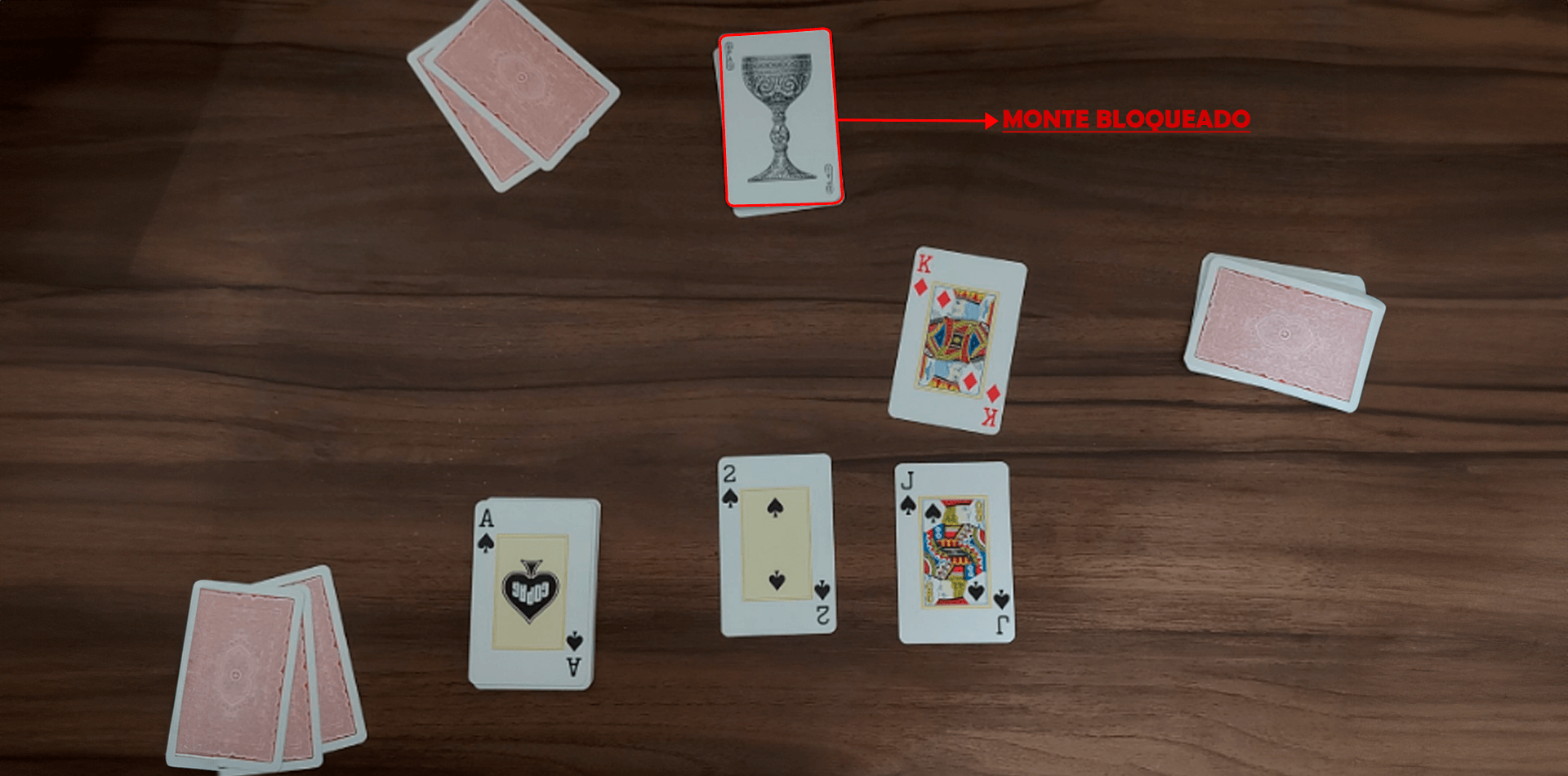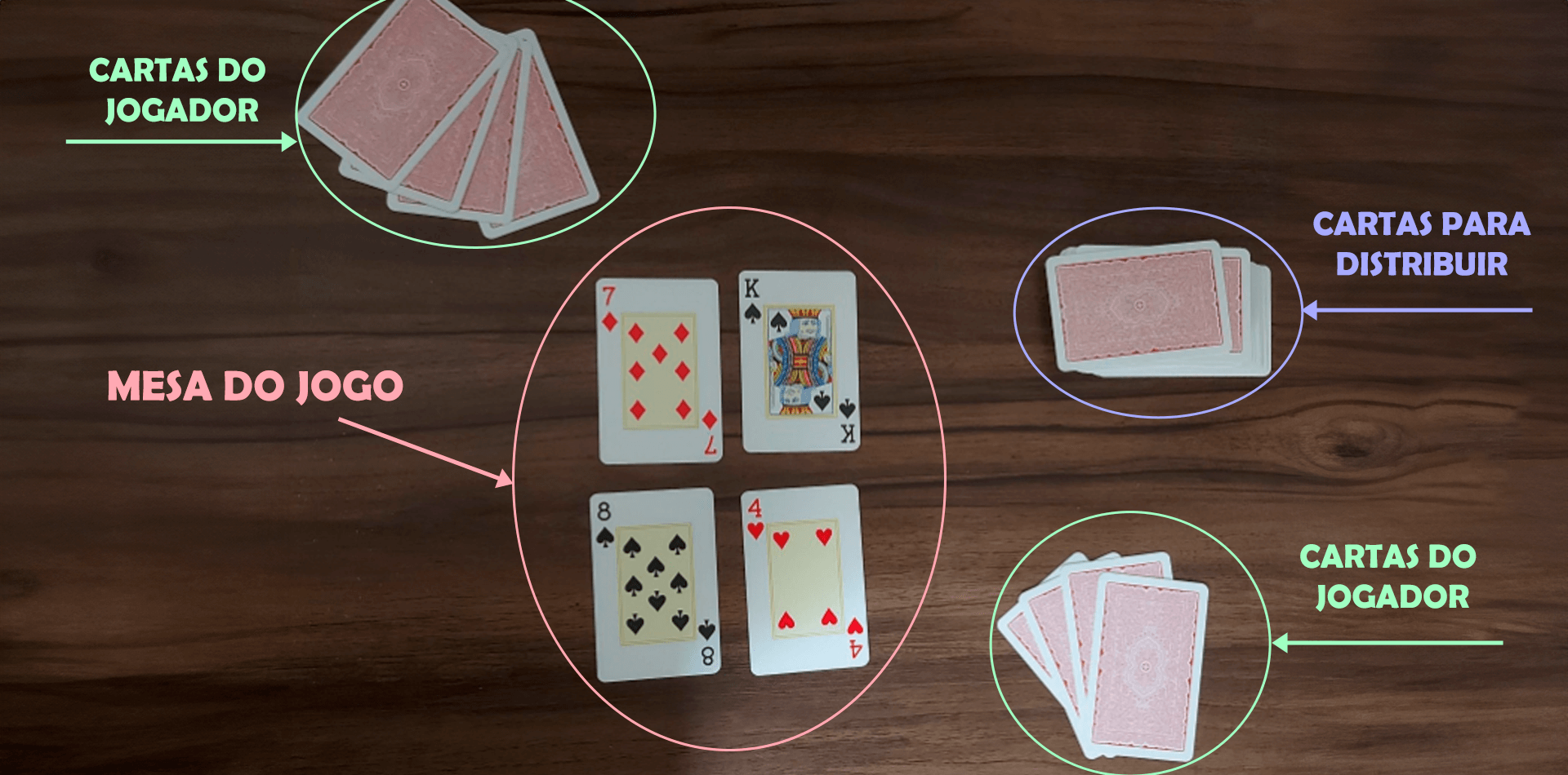 Para montar a mesa, o dealer deverá colocar cartas viradas para cima no centro da mesa.