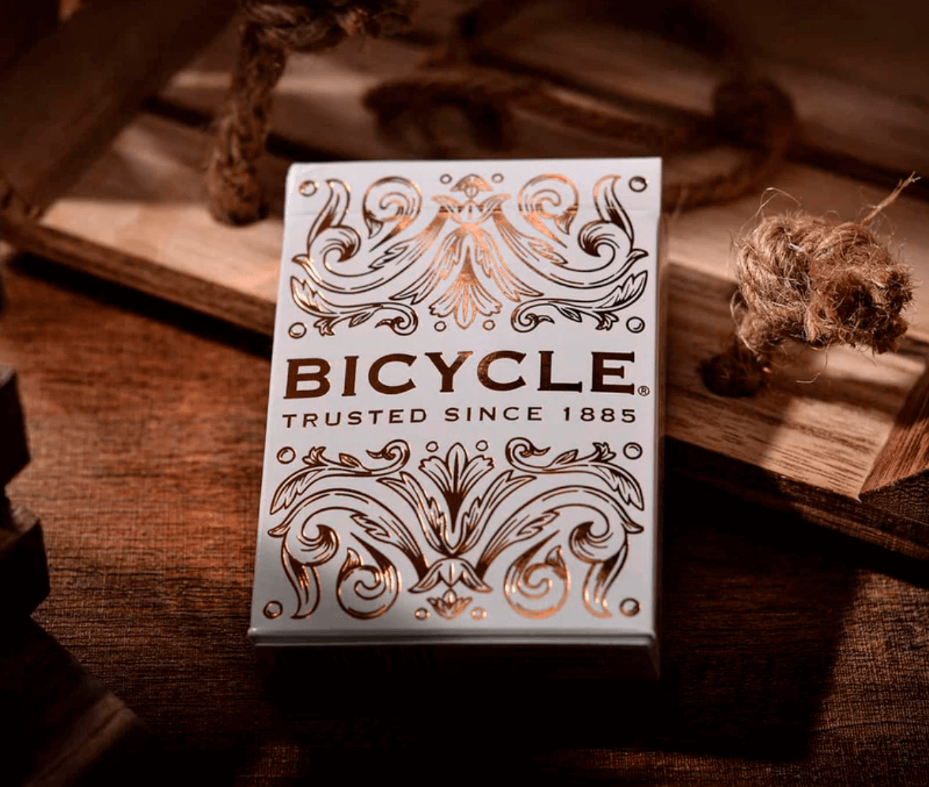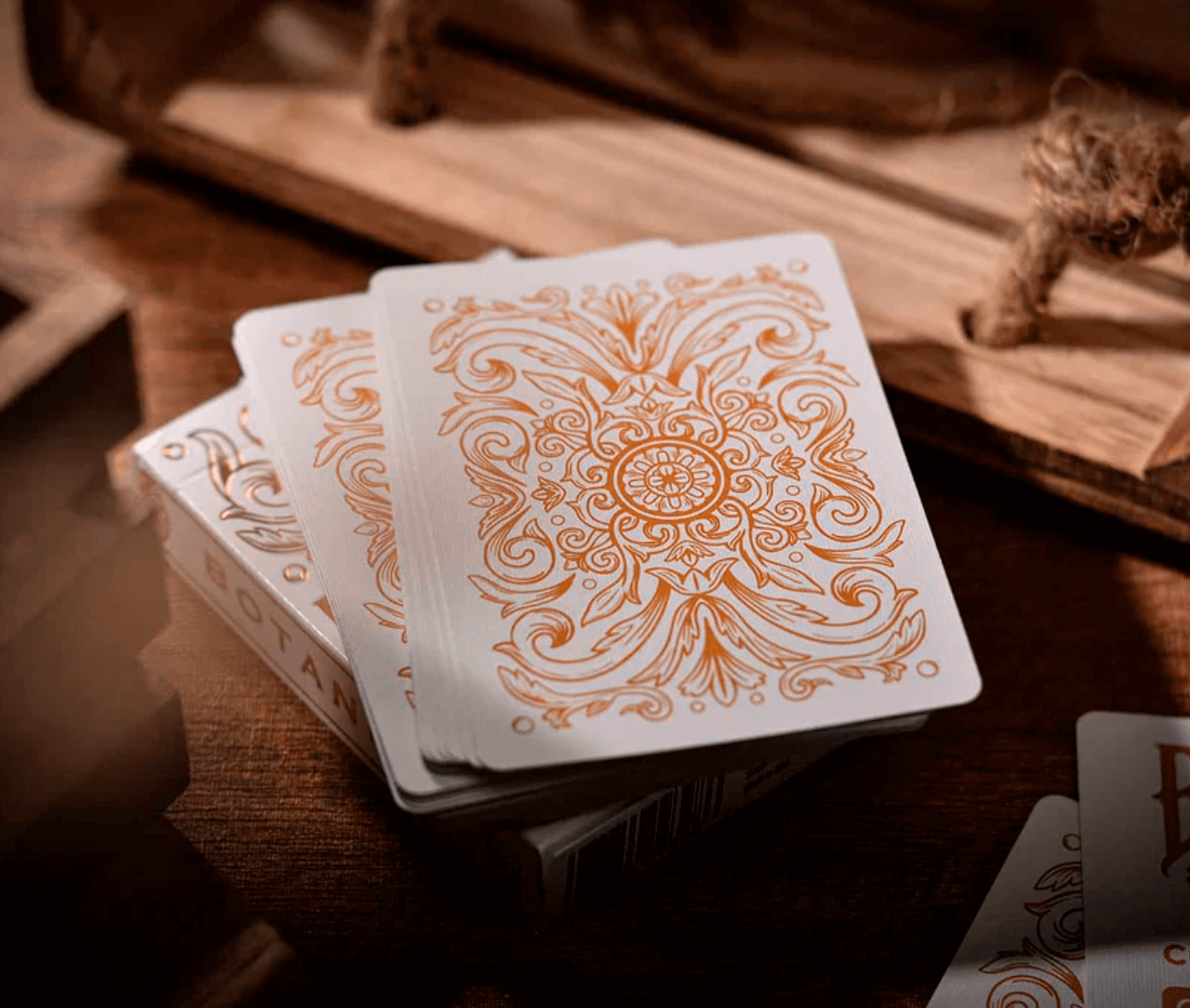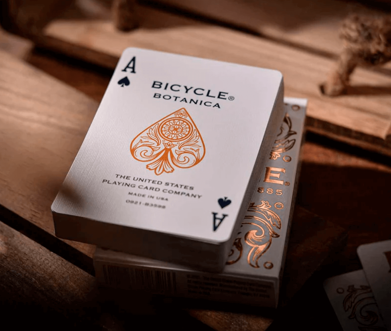 O baralho Bicycle Botanica apresenta uma folha de cobre no baralho para acentuar o design com um tema botânico e estética atemporal.