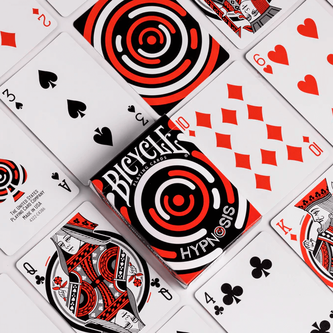 O baralho Hypnosis da Bicycle chegou em sua maestria na versão 3. Projetado com um back card diferenciado, apresentando um formato de espiral. Um modelo indispensável para mágicos e cardistry. Original, lacrado e produzido nos Estados Unidos da América.