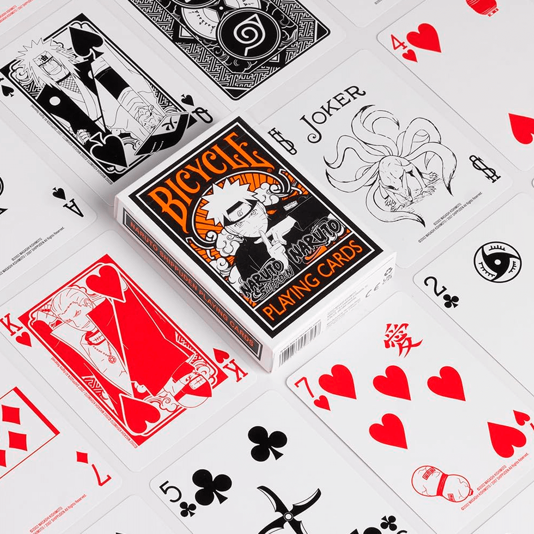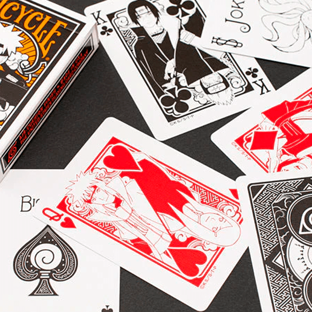 O Bicycle Naruto Shippuden traz o universo ninja de Masashi Kishimoto para suas mãos com personagens icônicos como Naruto, Sasuke, Sakura, Kakashi, Jiraiya, Pain e muitos outros.