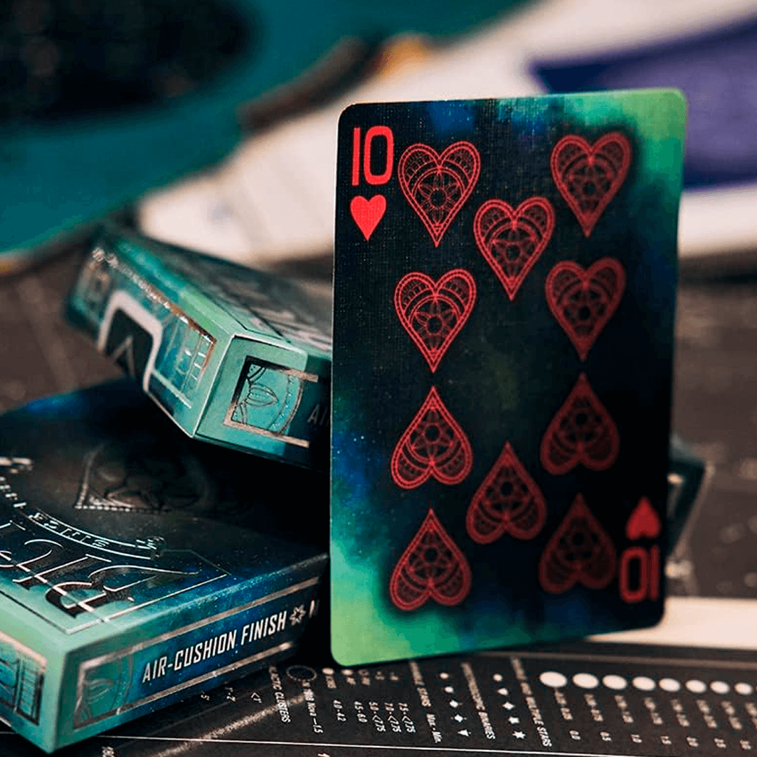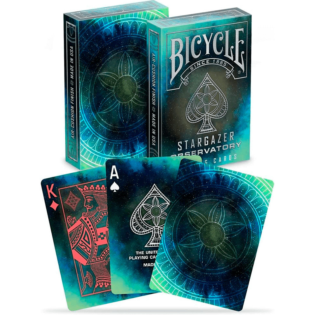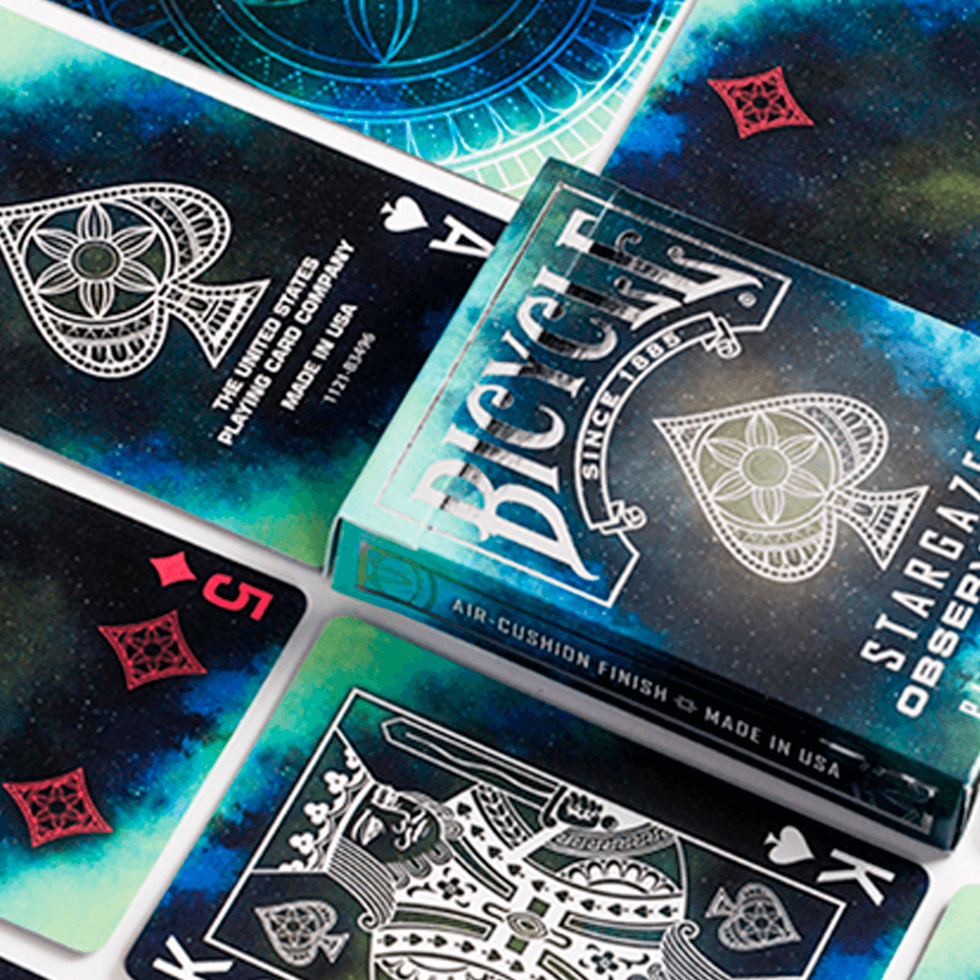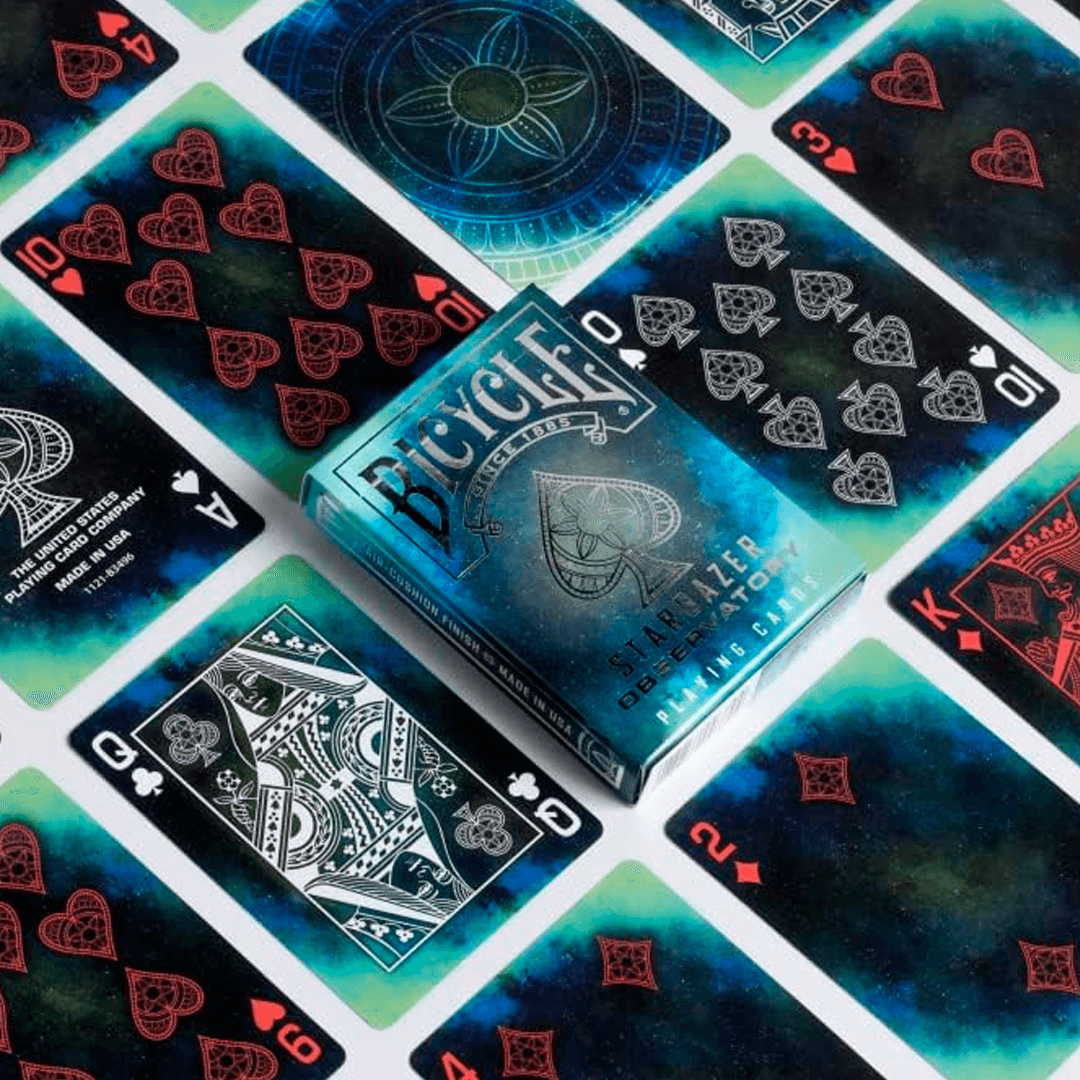 O baralho Bicycle Stargazer Observatory é a mais recente adição à coleção Stargazer com tema espacial. A caixa e o verso das cartas apresentam os matizes e cores das profundezas da galáxia.