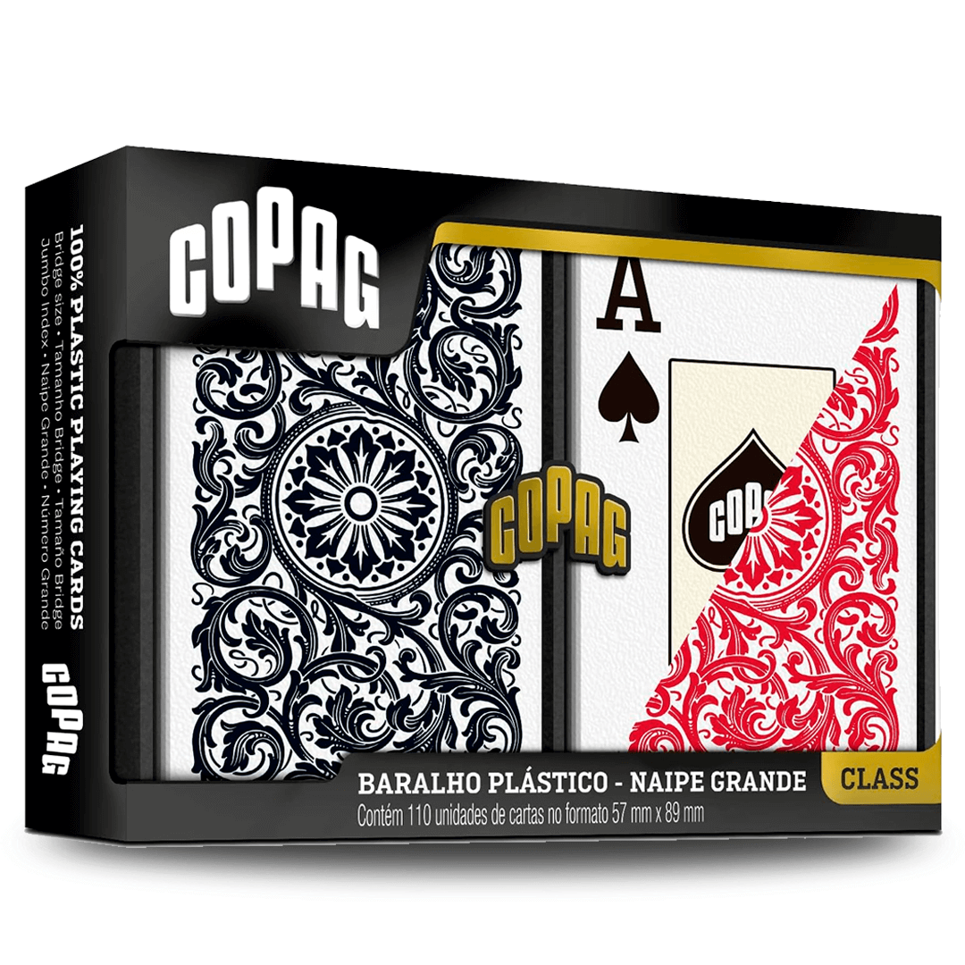 Class é a linha de baralhos de plástico ideal para os jogadores mais exigentes. Os decks possuem alta durabilidade e são resistentes ao manuseio e marcações. No estojo você encontra dois baralhos, um preto e outro vermelho. Produto original, lacrado e fabricado pela Copag.