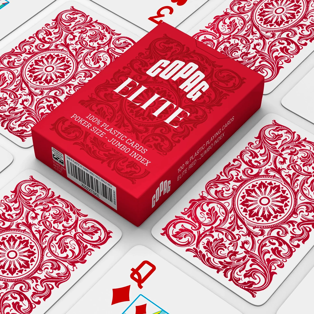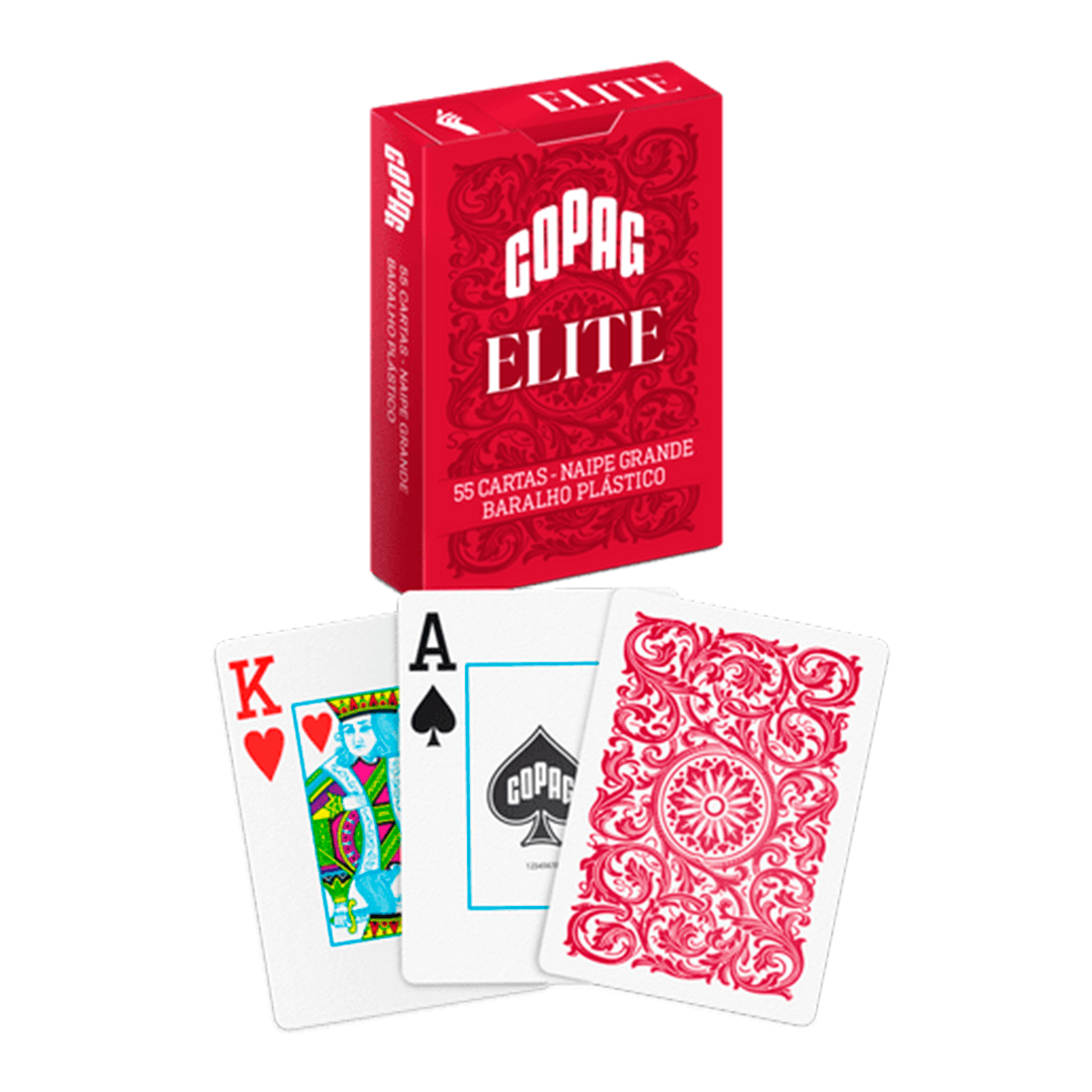 Flexível e durável, o baralho Copag Elite é fácil de embaralhar e possui a espessura e textura perfeita, suas cartas são em tamanho bridge size e seu material é 100% plástico, o tornando à prova d’água.