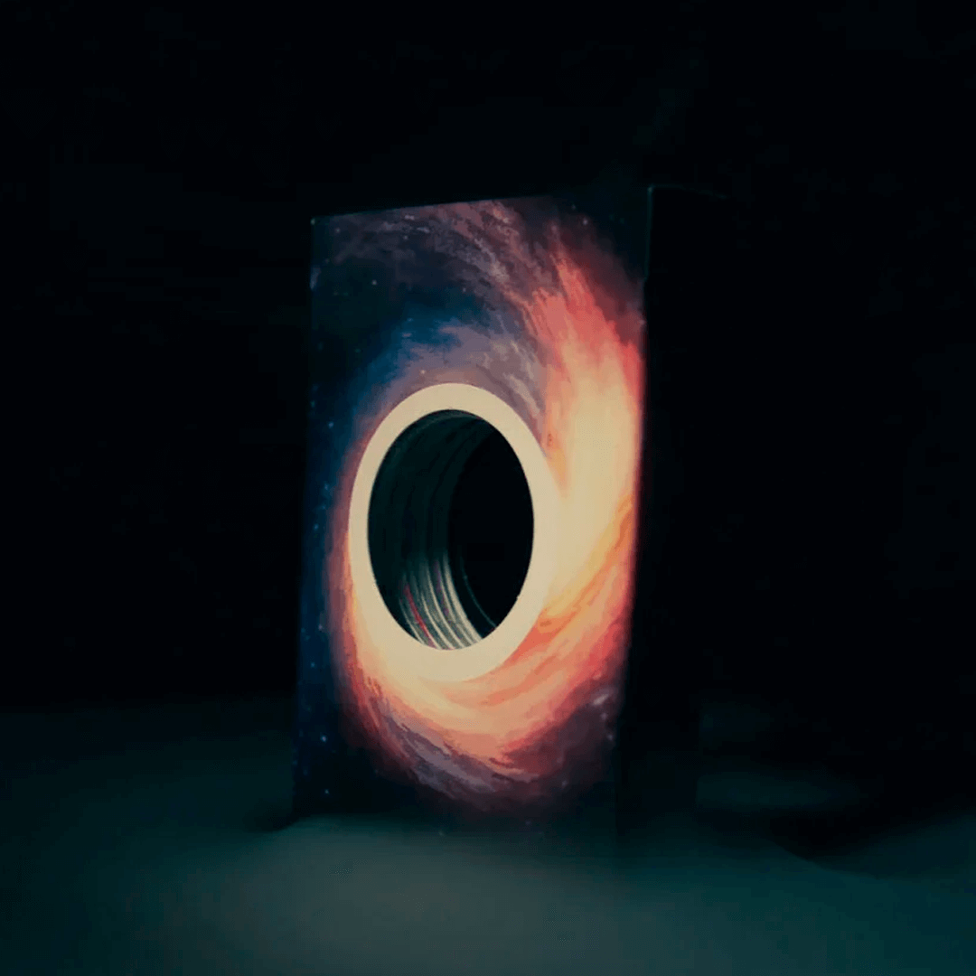 Orbit Black Hole foi desenvolvido com um corte circular no centro, dando a ilusão de viajar pelas profundezas de um buraco negro.