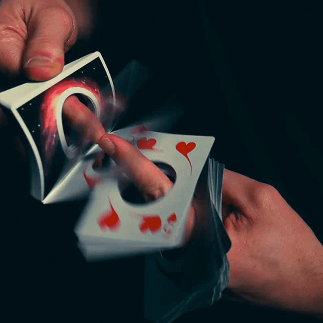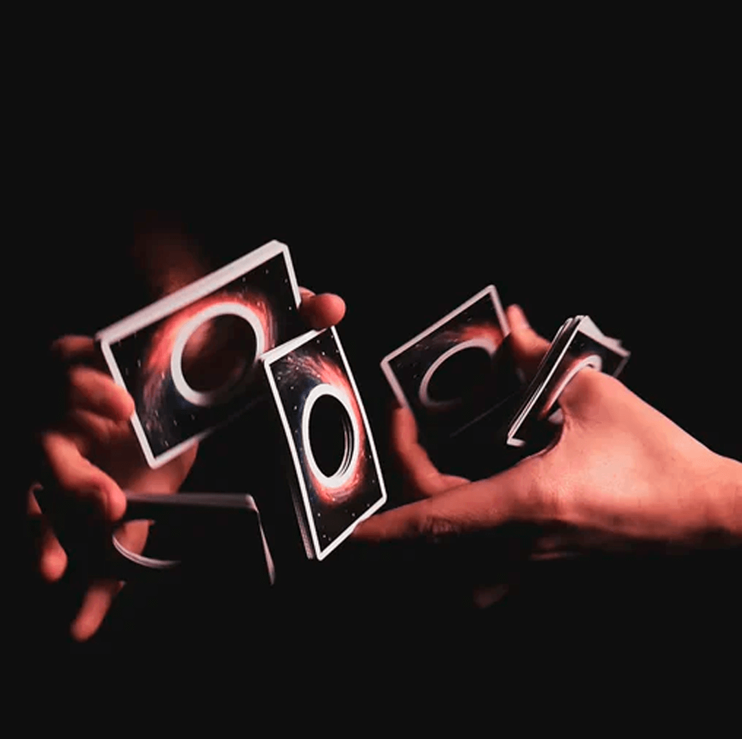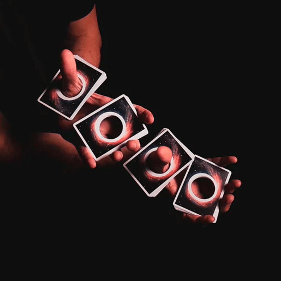 O baralho Orbit Black Hole foi projetado com um cativante corte circular no centro, dando a ilusão de ser puxado pelas profundezas de um buraco negro. Deck original, lacrado e fabricado nos Estados Unidos.