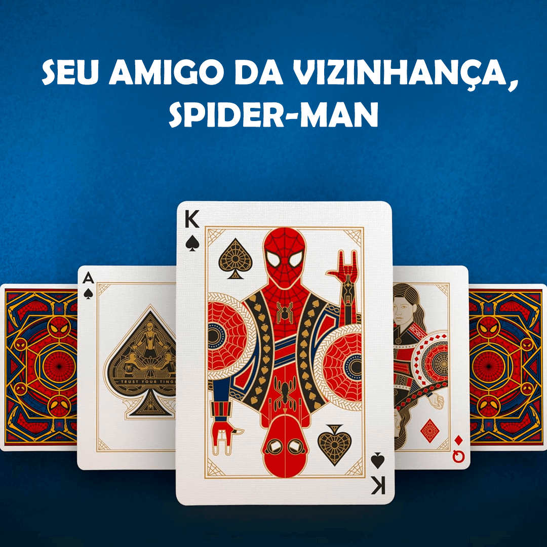 Se você é fã do amigo da vizinhança, este baralho do Spider Man fabricado pela Theory11 é um tesouro que não pode faltar em sua coleção.