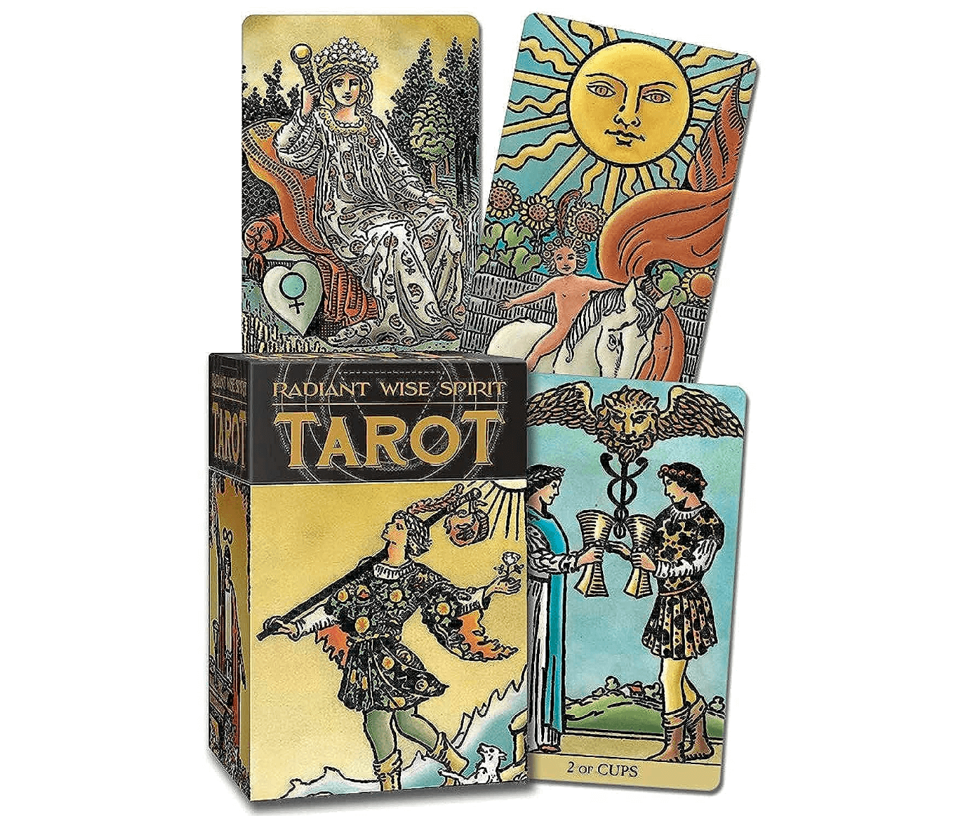 O Radiant Wise Spirit Tarot da Lo Scarabeo está esperando que você o embaralhe, distribua as cartas e contemple a sabedoria permanente que se revela a partir de suas imagens únicas.